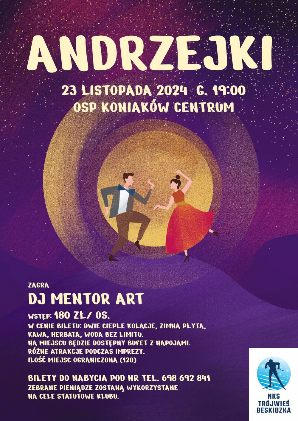 Narciarski Klub Sportowy Trójwieś Beskidzka zaprasza na Andrzejki w Strażnicy OSP Koniaków Centrum. Odbędą się one w dniu 23 listopada 2024. Początek wydarzenia g. 19.00