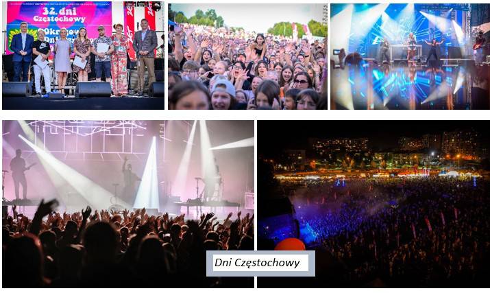 W ostatnich latach ważnym elementem obchodów była impreza Lato na Maxxxa, w ramach której odbywały się koncerty, animacje dla publiczności oraz strefa gastronomiczna. Nie zabraknie również wydarzeń muzycznych organizowanych przez Filharmonię Częstochowską im. Bronisława Hubermana, która jak co roku przygotuje specjalny koncert z okazji Dni Miasta. Podczas uroczystości odbędzie się także ceremonia wręczenia Nagród Miasta Częstochowy w Dziedzinie Kultury oraz wyróżnień Mecenas Kultury.