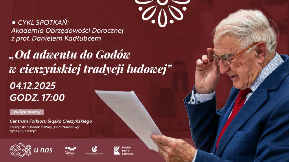 Cieszyński Ośrodek Kultury "Dom Narodowy" zaprasza na kolejne spotkanie z wybitnym znawcą kultury, tradycji i języka Śląska Cieszyńskiego, profesorem Danielem Kadłubcem. Wydarzenia z cyklu "Akademia Obrzędowości Dorocznej" organizowane są ramach działalności Centrum Folkloru Śląska Cieszyńskiego!