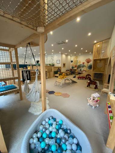 Połączenie relaksu i zabawy – dorośli mogą odpocząć przy dobrej kawie, podczas gdy dzieci rozwijają się w bezpiecznej, montessoriańskiej przestrzeni.