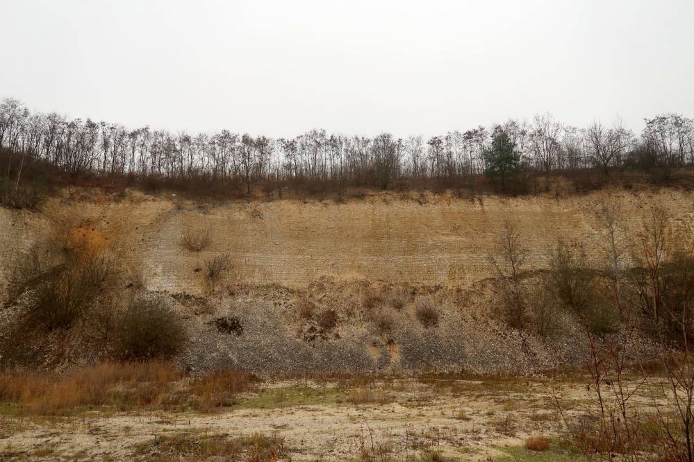 W południowej części kamieniołomu, obejmującej szczytowe partie rozciętego wzgórza, odsłonięto natomiast wapienie skaliste (miejscami margliste) w formie bioherm - soczew powstałych przy udziale kolonii sinic, a także gąbek o szkielecie krzemionkowym. Zespoły bioherm gąbkowych zbudowały strukturę o charakterze podmorskiej, stosunkowo głęboko położonej rafy, którą dopiero po ewentualnym wzroście do strefy lepiej naświetlonej zasiedlić mogłyby koralowce, przejmując rolę budowniczych rafy. W obrębie samych bioherm oraz w ich sąsiedztwie wapienie zawierają konkrecje krzemionkowe (buły krzemienne), powstałe z rozpuszczonych elementów obumarłych organizmów o szkielecie krzemionkowym.