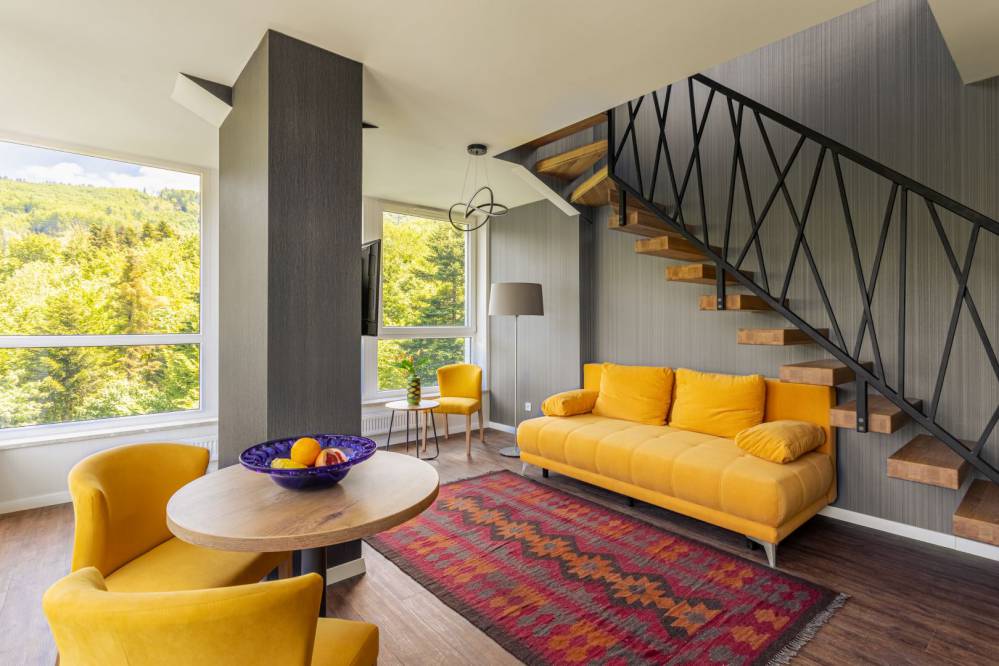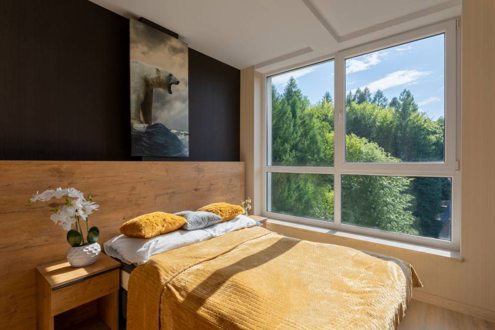 Na ośmiu piętrach inwestycji znajdują się 54 apartamenty. Większość mieszkań posiada dwa pokoje, na które składa się salon z aneksem kuchennym i sypialnią oraz łazienka. Z każdego mieszkania roztacza się widok na wszechobecną naturę – w zależności od usytuowania możliwy jest widok na góry, dolinę, potok lub las. W ofercie znajdują się również apartamenty z tarasami o powierzchni od 10 do 70 metrów kwadratowych. Dla osób poszukujących większej przestrzeni przewidziano dwa dwupoziomowe apartamenty na ostatniej kondygnacji.