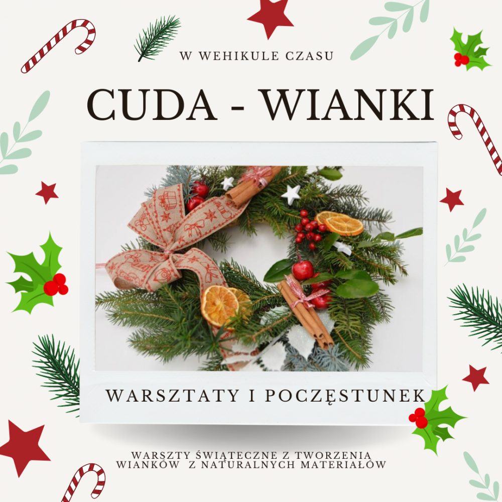 - Wytwarzanie świątecznych wianków z naturalnych roślin, pachnących lasem, wprowadzających do wnętrza świąteczna atmosferę, udekorowanych według własnego upodobania, warsztaty połączone ze świątecznym poczęstunkiem, dla dzieci od 7 lat. Cena: 55 zł/os.