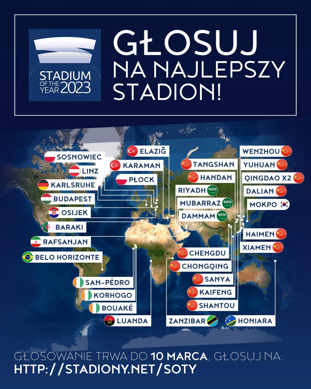 W konkursie można oddać głos na 5 ulubionych stadionów.
