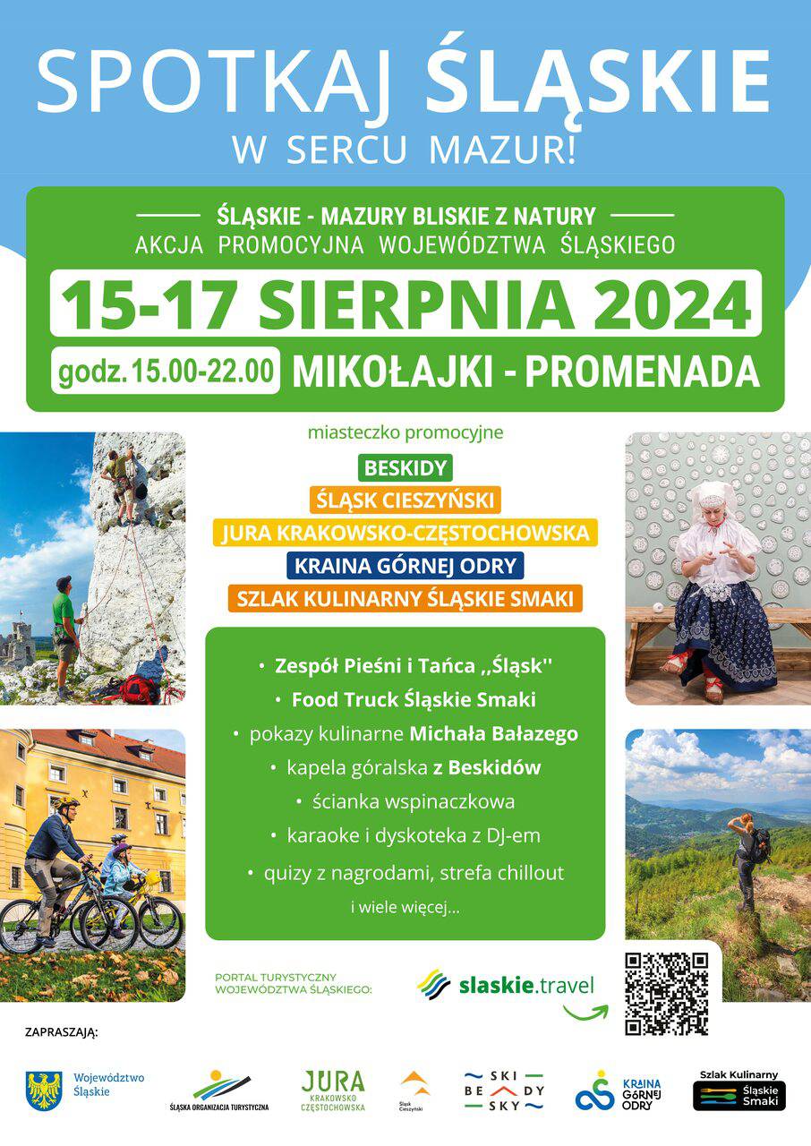 Na promenadzie w Mikołajkach zaplanowana jest moc atrakcji – każda z nich charakterystyczna jest dla poszczególnego regionu – ścianka wspinaczkowa oraz pokazy umiejętności psów Jurajskiej Grupy GOPR z terenu Jury Krakowkso-Częstochowskiej, kapela góralska z Beskidów, pokazy tradycyjnych strojów regionalnych ze Śląska Cieszyńskiego prowadzone przez Zespół Pieśni i Tańca Ziemi Cieszyńskiej czy karaoke i zabawa z DJ-em z regionu Krainy Górnej Odry. Przez cały okres trwania akcji odwiedzający i turyści będą mieli przyjemność podziwiania występów artystów z Zespołu Pieśni i Tańca „Śląsk” im. Stanisława Hadyny, który jest ambasadorem nie tylko śląskiej, ale polskiej kultury.