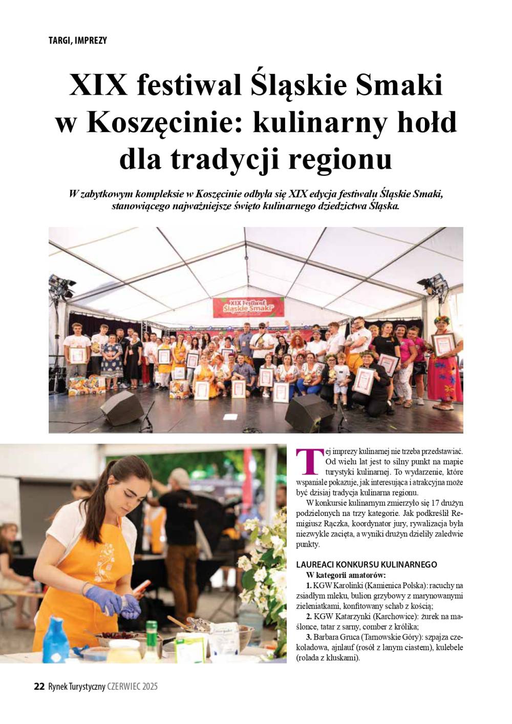 W magazynie RYNEK TURYSTYCZNY ukazał się artykuł na temat XIX FESTIWALU ŚLĄSKIE SMAKI, natomiast w rocznym raporcie Turystka Kulinarna 2025 – artykuł o kuchni regionalnej województwa śląskiego i restauracjach Szlaku Kulinarnego Śląskie Smaki.