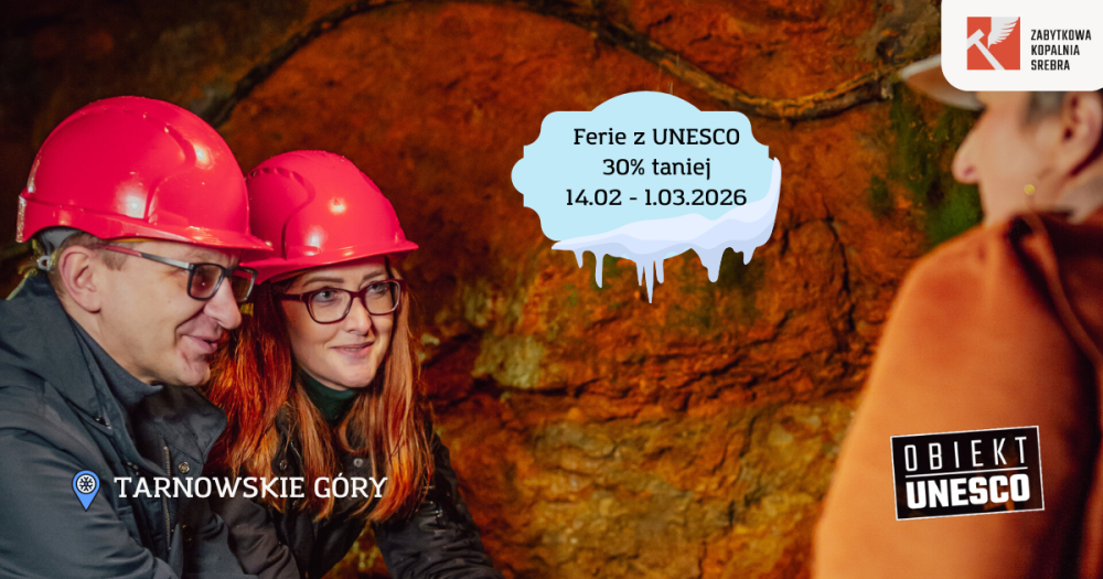Od 14 lutego do 1 marca zapraszamy na zwiedzanie Zabytkowej Kopalni Srebra oraz Sztolni Czarnego Pstrąga w Tarnowskich Górach z przewodnikiem aż 30% taniej! Tegoroczne ferie zimowe w województwie śląskim to doskonała okazja, by odkryć jedyne w woj. śląskim obiekty, wpisane na Listę Światowego Dziedzictwa UNESCO.
