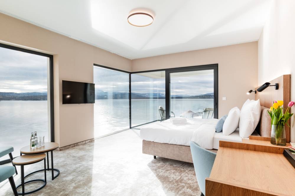 Do dyspozycji gości oddano 132 pokoje i apartamenty z widokiem na jezioro oraz góry. W ofercie znajdują się zarówno pokoje dla par, jak i większe apartamenty rodzinne, w tym wybrane wnętrza z prywatną sauną.