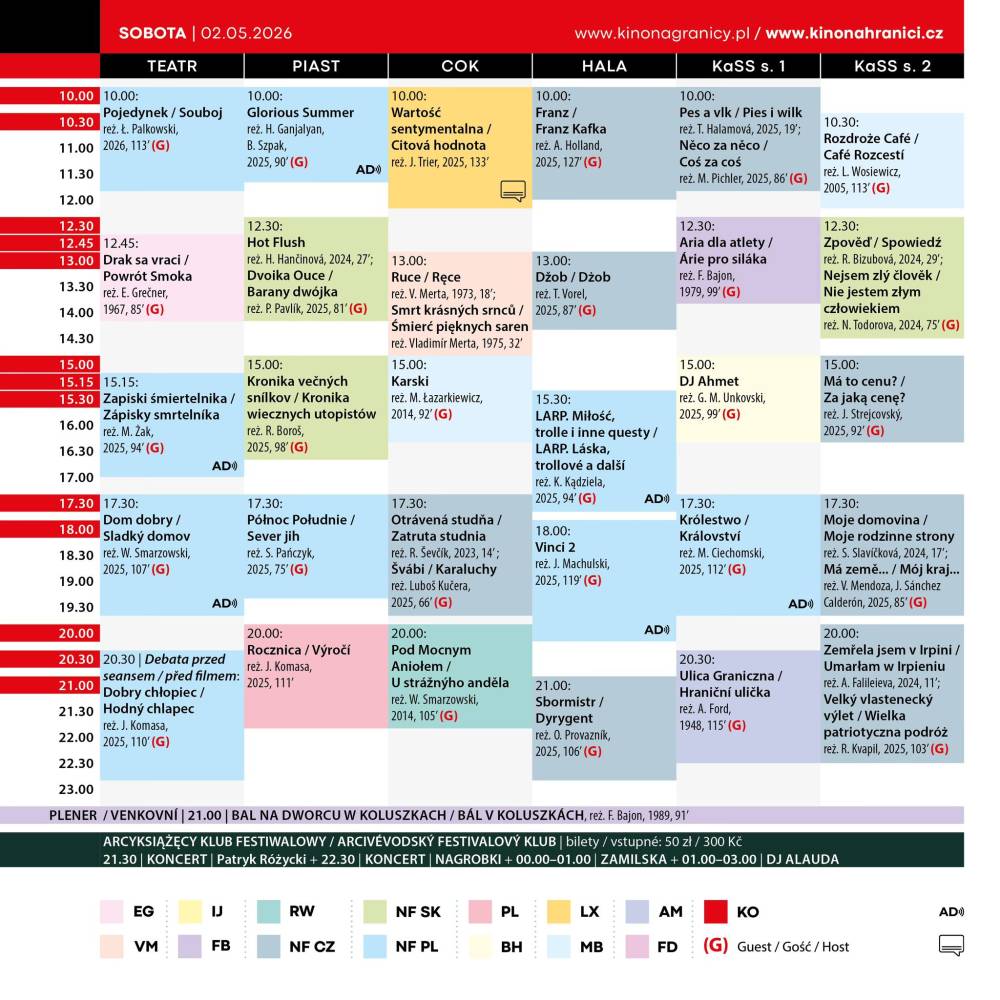 Kino Na Granicy / Kino Na Hranici to największy przegląd filmów z Polski, Czech i Słowacji - jedyne wydarzenie filmowe, które już od ponad dwóch dekad odbywa się w jednym mieście, ale po dwóch stronach granicy – w polskim i czeskim Cieszynie.