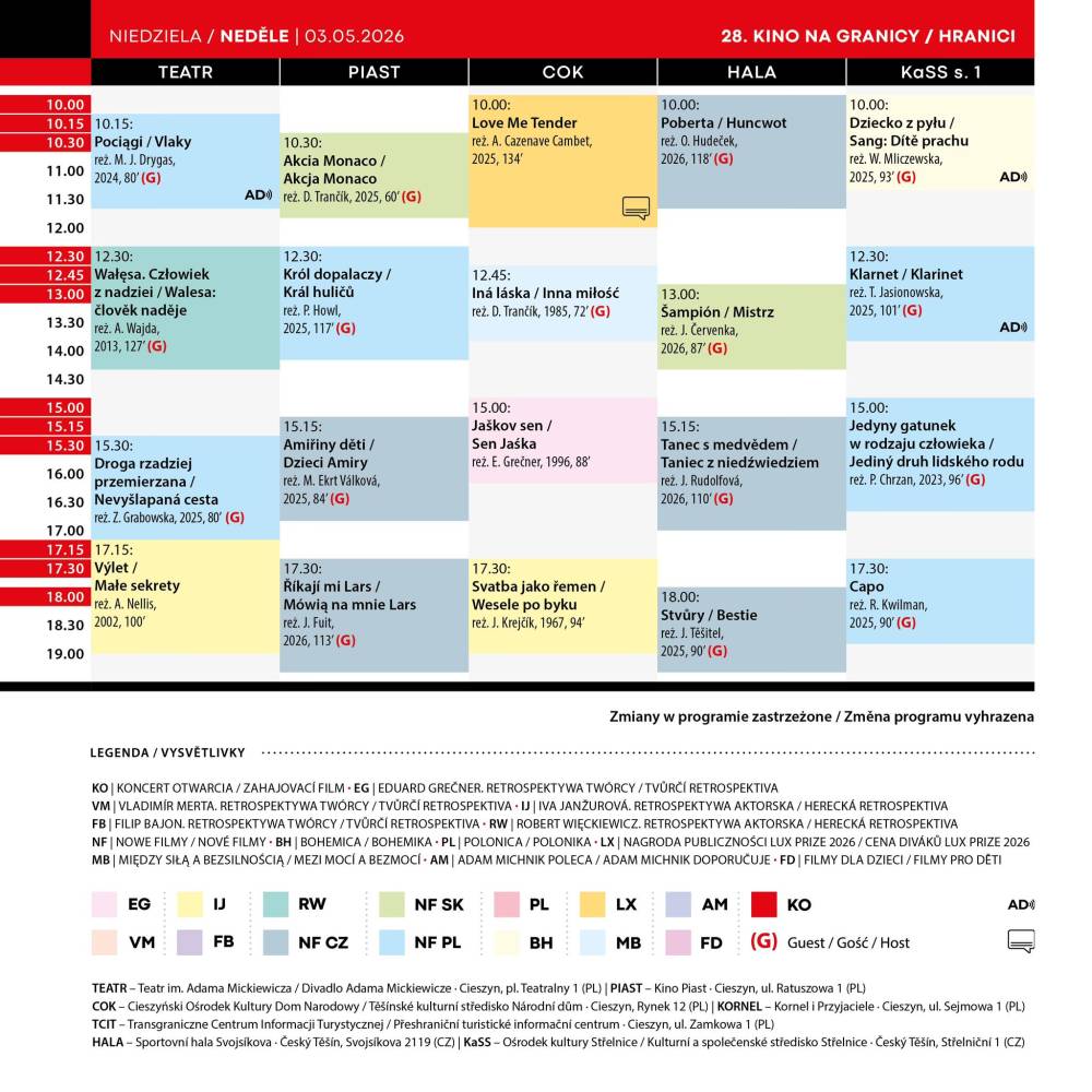 KALENDARZ PROJEKCJI 28. KINA NA GRANIC: