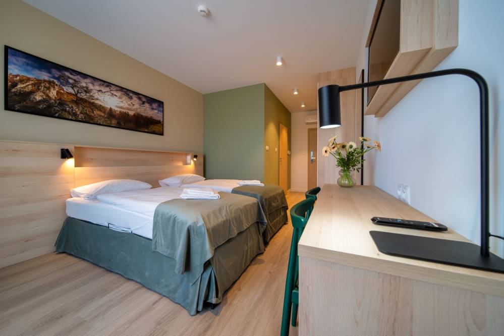 • 22 NOWE klimatyzowane pokoje na Jurze (z możliwością dostawek) w tym pokój przystosowany dla osób niepełnosprawnych oraz pokój studio rodzinny. Wewnątrz budynku znajduje się winda, umożliwiająca wygodny dostęp do wszystkich kondygnacji.