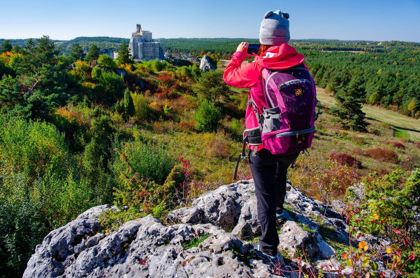 Mimo niezbyt długiego dystansu, trasa tej wycieczki jest niezwykle urozmaicona. Łączy zwiedzanie popularnego zamku z mniej uczęszczanymi, ale równie atrakcyjnymi zakątkami. Podczas jednej wędrówki przemierzymy cenne przyrodniczo obszary i poznamy typowy dla Jury krajobraz, naszpikowany fantazyjnymi wapiennymi skałami oraz malowniczymi punktami widokowymi. Ze względu na brak trudności oraz niewielkie przewyższenia trasę tę mogą wybrać turyści początkujący oraz rodziny z dziećmi.