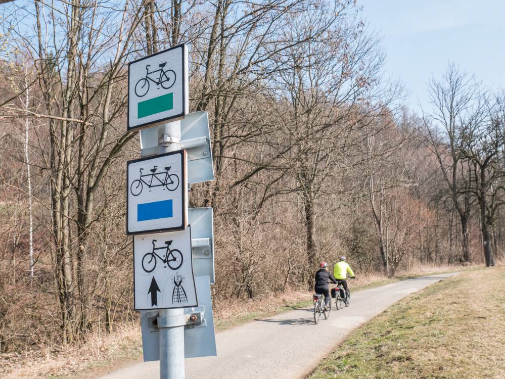 Szlak rowerowy Śladami Stroju Cieszyńskiego, oznakowanie szlaków rowerowych na trasie, fot. D. Berłowski - roweremposlasku.pl