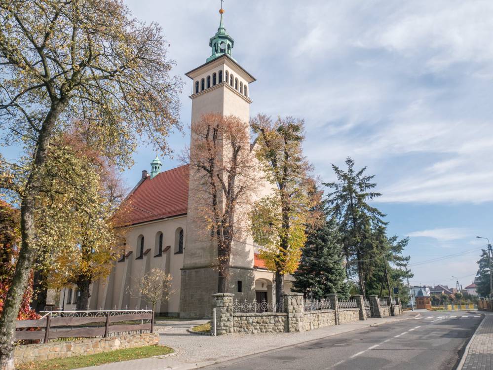 Czerwony szlak rowerowy nr 327, kościół w Pogrzebieniu, fot. Damian Berłowski - roweremposlasku.pl
