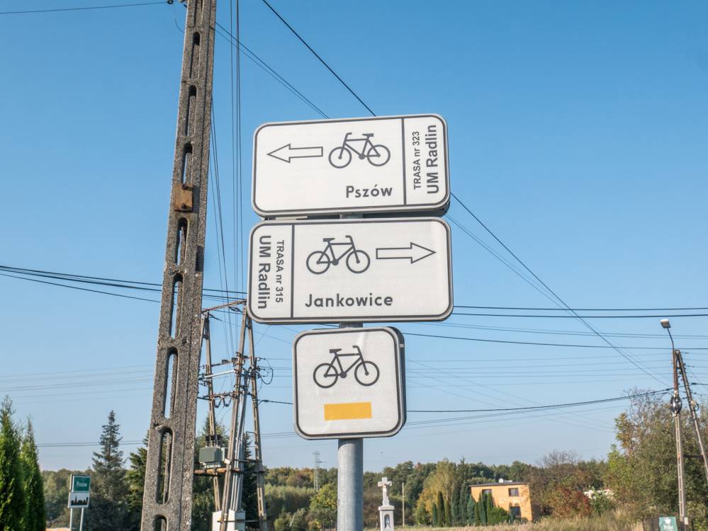 Żółty szlak rowerowy nr 323 Pszów - Jankowice, Szlak Pielgrzymkowy, oznakowanie, fot. Damian Berłowski - roweremposlasku.pl