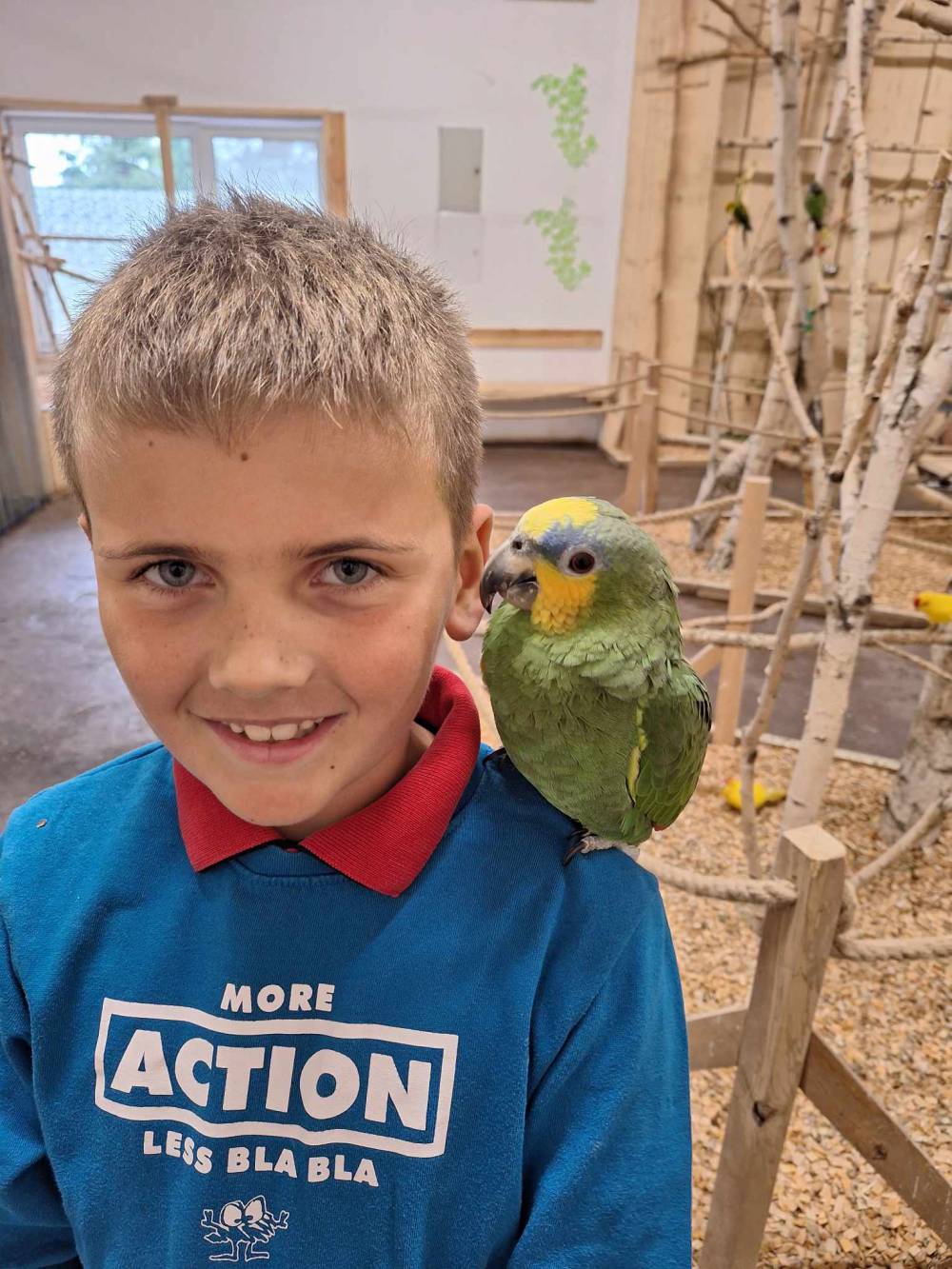 Kogo spotkasz w papugarnii? Około 60 oswojonych papug z 14 różnych gatunków, są m.in. amazonki, senegalki, rudosterki, górskie, aleksandretty, modrolotki, nimfy i nierozłączki i wiele innych. W papugarni każdy może podejrzeć życie tych niezwykle barwnych ptaków. Te swobodnie latają i cieszą oko. Za sprawą karmy można oczywiście sprawić, że ptaki znajdą się na wyciągnięcie ręki. Ptaki chętnie przylatują i siadają na gościach, którzy mają możliwość karmienia, dotknięcia i głaskania pierzastych milusińskich.